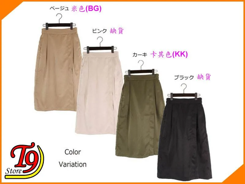 日本進口 絲光斜紋布包裹式裙子 ★ 100% 日本內銷服飾 ★ 顏色 : 米色(BG),卡其色(KK) ★ 材 …