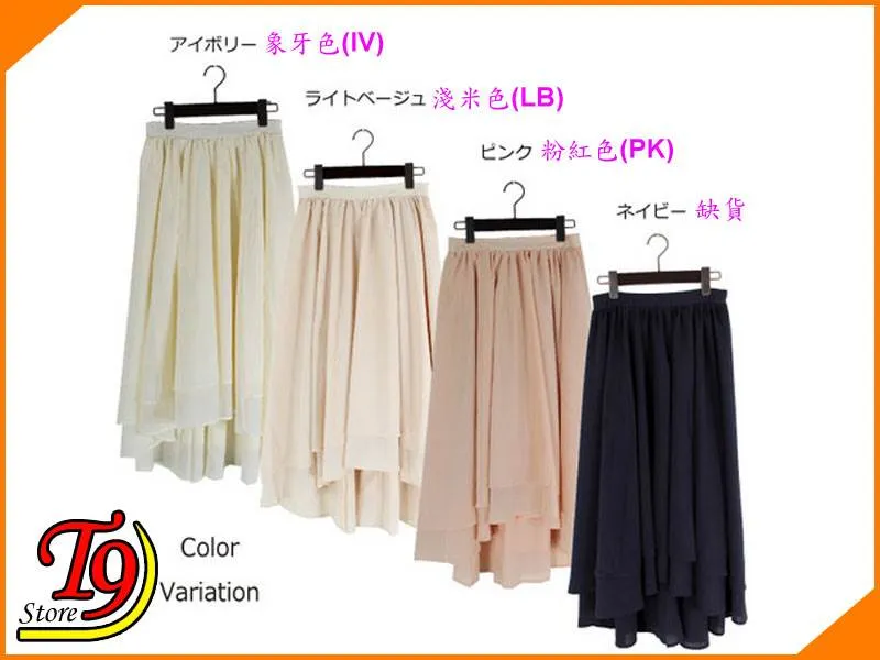 日本進口 雪紡下擺手帕百褶裙 ★ 100% 日本內銷服飾 ★ 顏色 : 白色(WT),象牙色(IV),粉紅色( …