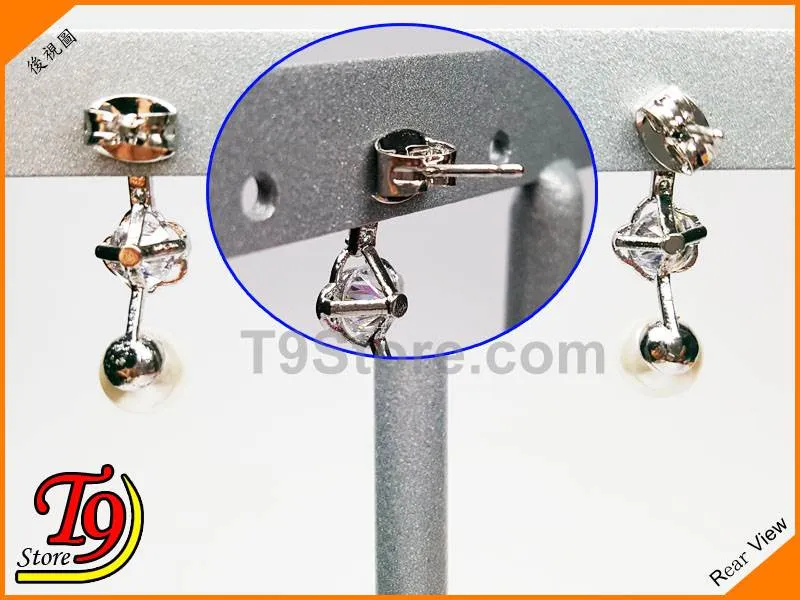 韓國製 貓和水滴型珍珠垂耳式耳環