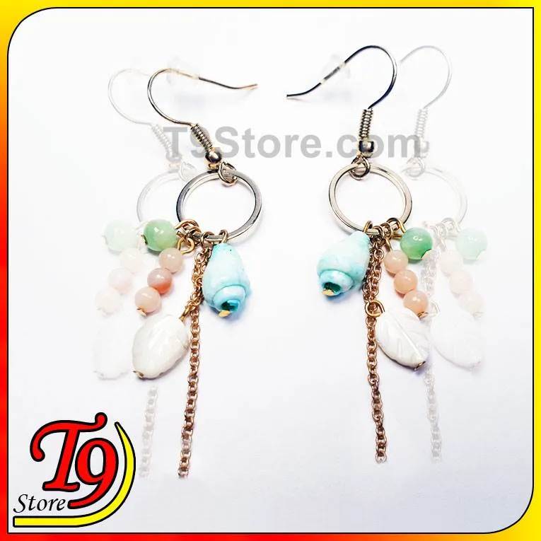 韓國製 手工天然石貝殼流蘇耳環