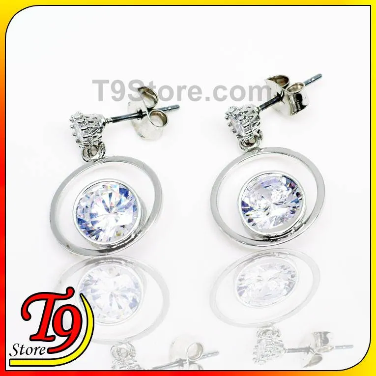 韓國製 圓形大小鑽垂耳式耳環
