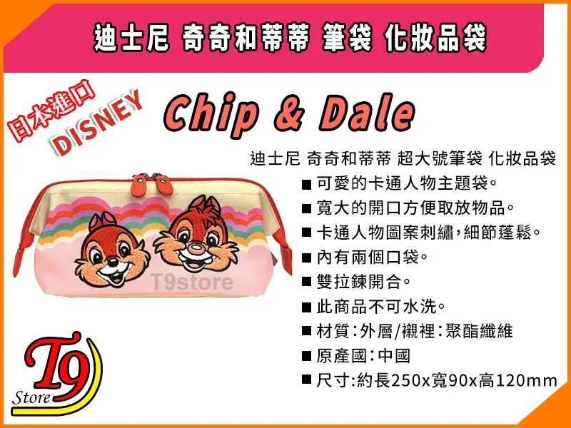 日本進口 Disney (迪士尼) 奇奇和蒂蒂(A) 超大號筆袋 化妝品袋
