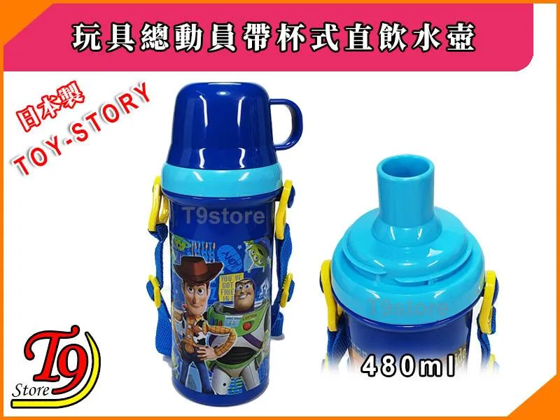 日本製 Toy Story (玩具總動員藍) 帶杯式直飲水壺 水瓶 兒童水壺 (480ml) (有肩帶)