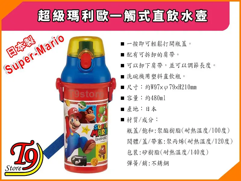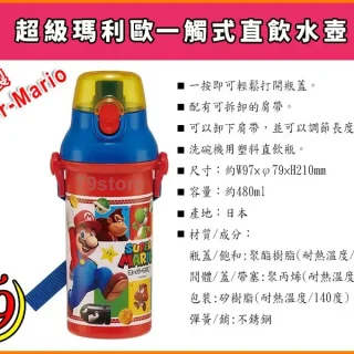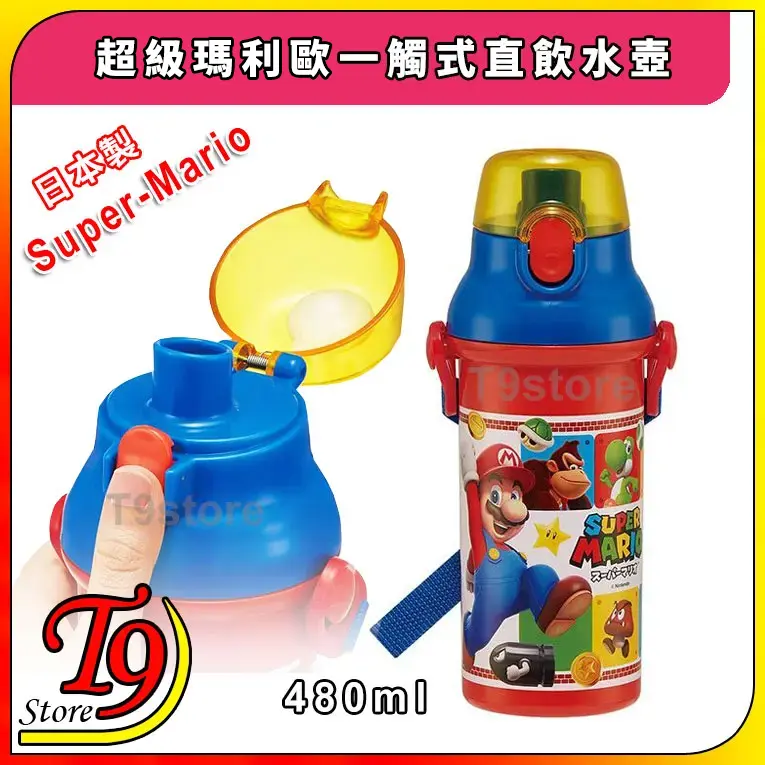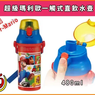 日本製 Super-Mario (超級瑪利歐) 一觸式直飲水壺 水瓶 兒童水壺 (480ml)
