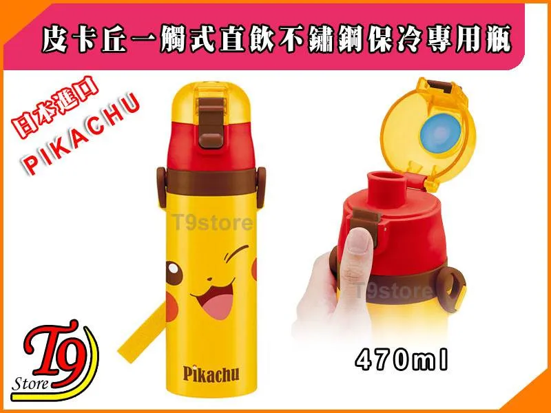 日本進口 Pikachu (寶可夢 皮卡丘) 一觸式直飲不鏽鋼保冷專用瓶 (470ml) (有肩帶)