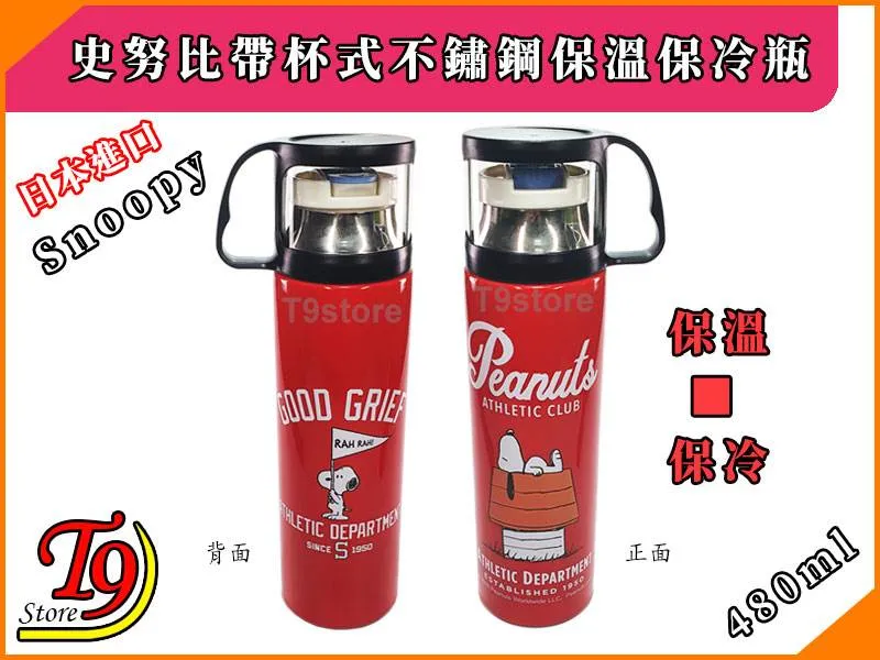 日本進口 Snoopy (史努比紅) 帶杯式不鏽鋼保溫瓶 保冷瓶 水壺 水瓶 (480ml)
