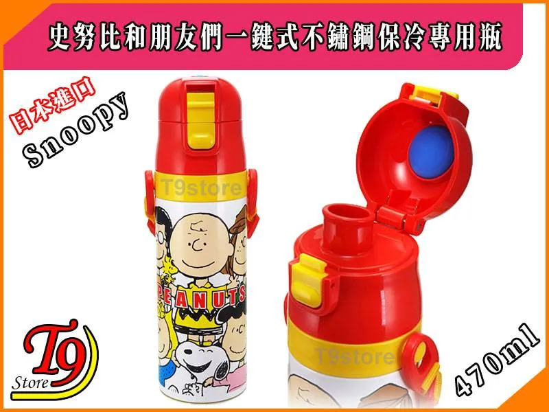 日本進口 Snoopy 史努比和朋友們 一觸式不鏽鋼保冷專用瓶 (470ml) (有肩帶)