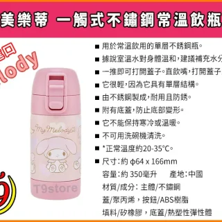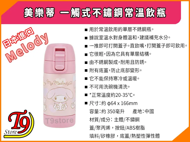 日本進口 Melody (美樂蒂) 一觸式不鏽鋼常溫飲瓶 (350ml)