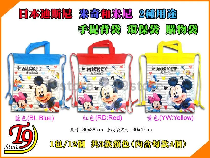 日本進口 Disney (迪士尼) 2種用途手提袋或背袋 環保袋 購物袋(1包12個)